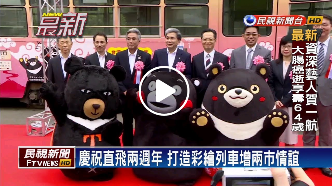 【民視即時新聞】提到日本熊本縣,很多人第一個想到吉祥物熊本熊。國籍航空公司看準熊本熊的吸客力,讓它跟台灣喔熊,和高雄熊合體出任務,打造「三熊友達號」彩繪機,飛行熊本航線滿兩週年了。最新特別和當地市電列車合作,再推出三熊彩繪列車,喔熊和高雄熊還現身熊本街頭,賺足路人目光,成功進行吉祥物外交呢!【民視即時新聞】提到日本熊本縣,很多人第一個想到吉祥物熊本熊。國籍航空公司看準熊本熊的吸客力,讓它跟台灣喔熊,和高雄熊合體出任務,打造「三熊友達號」彩繪機,飛行熊本航線滿兩週年了。最新特別和當地市電列車合作,再推出三熊彩繪列車,喔熊和高雄熊還現身熊本街頭,賺足路人目光,成功進行吉祥物外交呢!【民視即時新聞】提到日本熊本縣,很多人第一個想到吉祥物熊本熊。國籍航空公司看準熊本熊的吸客力,讓它跟台灣喔熊,和高雄熊合體出任務,打造「三熊友達號」彩繪機,飛行熊本航線滿兩週年了。最新特別和當地市電列車合作,再推出三熊彩繪列車,喔熊和高雄熊還現身熊本街頭,賺足路人目光,成功進行吉祥物外交呢!