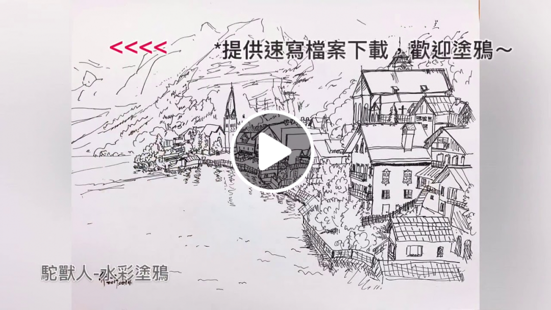 水彩塗鴉5: 哈修塔特(watercolor)速寫上色(提供速寫檔案下載) 奧地利 哈修塔特(Hallstatt), 遺落人間的仙境 很適合拿來練習速寫~XD 先用代針筆勾勒一下輪廓~就可以上色了~ Google一張風景照來參考~也可以隨意塗鴉上色~~ (阿~~頻道訂閱募集中喔~如果喜歡駝獸人頻道~水彩塗鴉5: 哈修塔特(watercolor)速寫上色(提供速寫檔案下載) 奧地利 哈修塔特(Hallstatt), 遺落人間的仙境 很適合拿來練習速寫~XD 先用代針筆勾勒一下輪廓~就可以上色了~ Google一張風景照來參考~也可以隨意塗鴉上色~~ (阿~~頻道訂閱募集中喔~如果喜歡駝獸人頻道~水彩塗鴉5: 哈修塔特(watercolor)速寫上色(提供速寫檔案下載) 奧地利 哈修塔特(Hallstatt), 遺落人間的仙境 很適合拿來練習速寫~XD 先用代針筆勾勒一下輪廓~就可以上色了~ Google一張風景照來參考~也可以隨意塗鴉上色~~ (阿~~頻道訂閱募集中喔~如果喜歡駝獸人頻道~